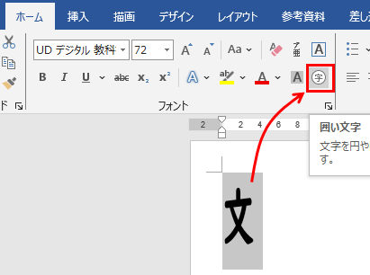 ワードでは図形を使わずに二文字を〇で囲むこともできます。